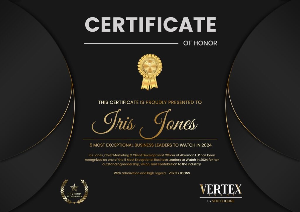 Iris’s journey, from her childhood fascination with Perry Mason to her trailblazing career in law, exemplifies the power of determination and purpose. Her contributions to the legal industry—both through her groundbreaking work and her leadership at Akerman—serve as a testament to the importance of innovation, collaboration, and client-centered service. By staying true to her values, Iris has created a lasting legacy of integrity, compassion, and excellence.